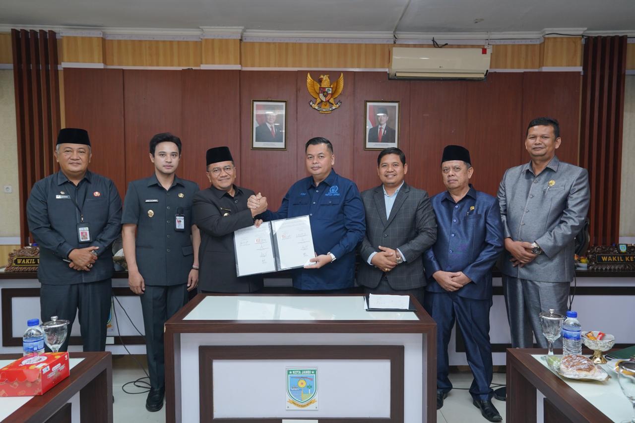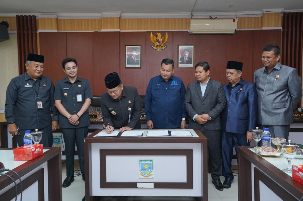Dilangsungkan di Ruang Rapat A DPRD Kota Jambi, penandatanganan dilakukan langsung antara Wali Kota Jambi Dokter Maulana didampingi Wakil Wali Kota Diza Hazra Aljosha bersama Ketua DPRD Kota Jambi Kemas Faried Alfarelly dan para unsur Pimpinan DPRD, Wakil Ketua I M Yasir, Wakil Ketua II Jefrizen dan Wakil Ketua III Naim.