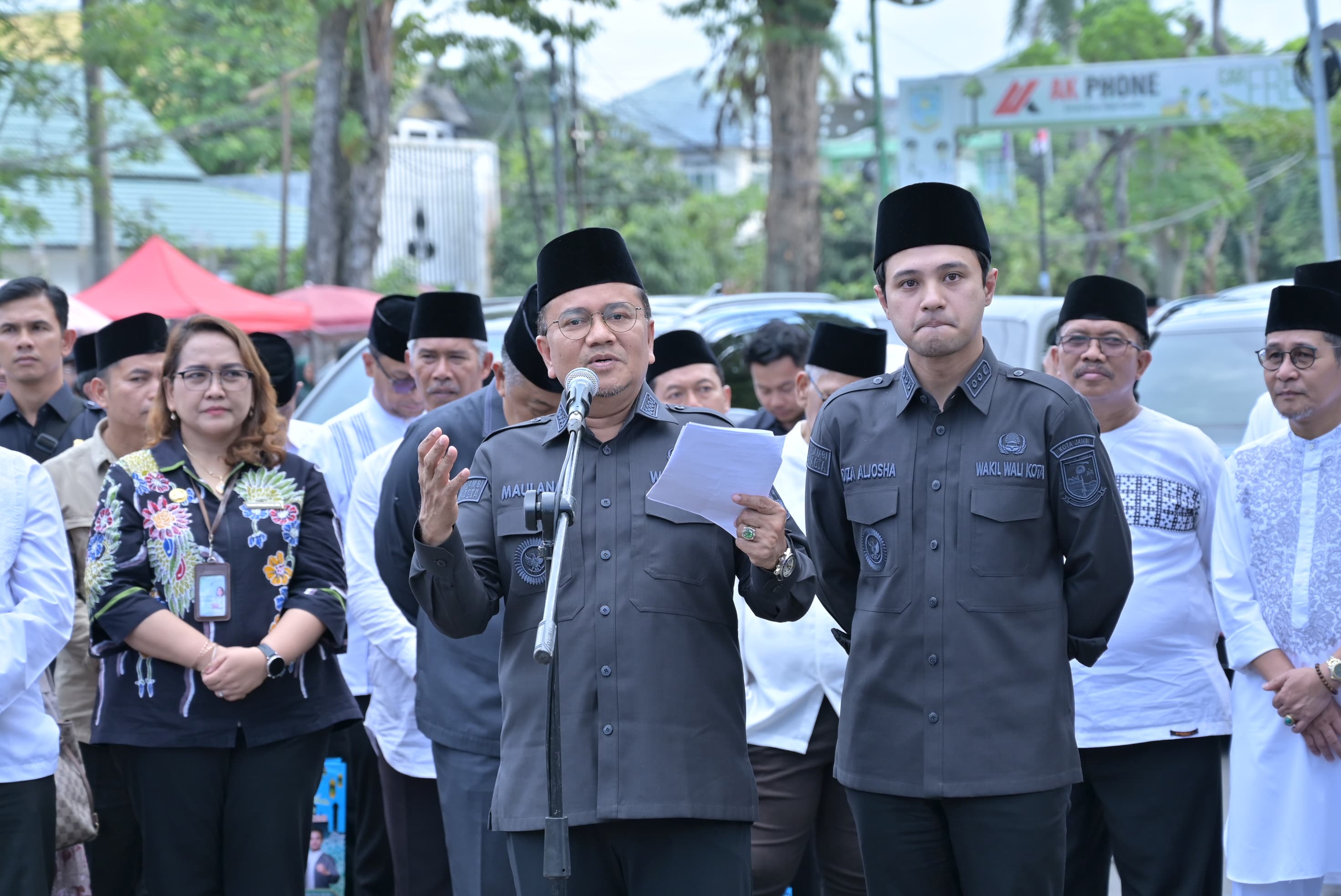 Jambinewsroom.com Jambi - Wali Kota Jambi dokter Maulana didampingi Wakil Wali Kota Diza Hazra Aljosha bersama Sekretaris Daerah (Sekda) A Ridwan membuka Pasar Bedug Ramadhan 1446 H Masjid Al-Muhajirin, Kelurahan Handil Jaya, Kecamatan Kotabaru, pada Sabtu sore (01/3/2025).