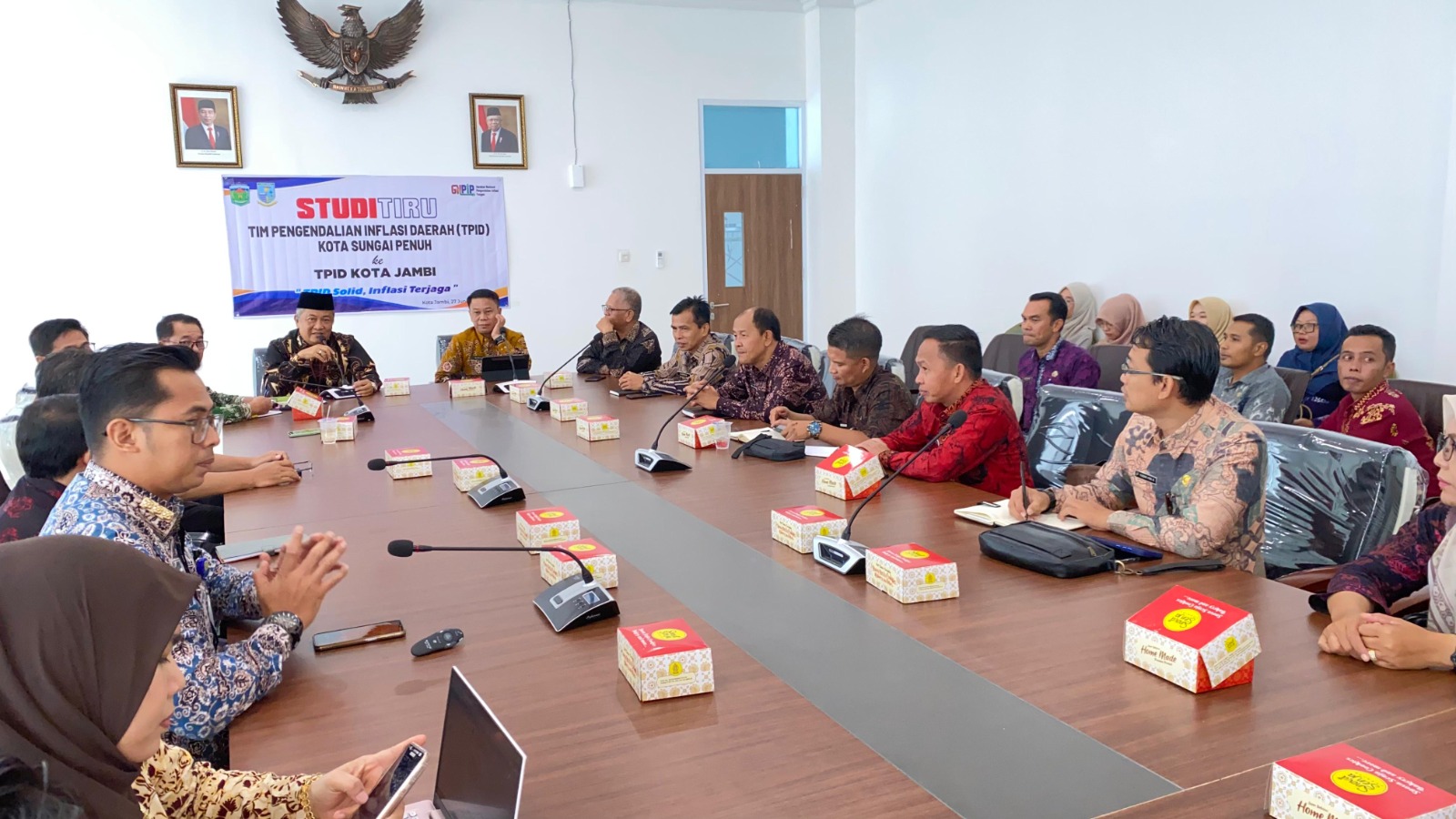 Delegasi yang tergabung dalam Tim Pengendalian Inflasi Daerah (TPID) Kota Sungai Penuh tersebut, diterima oleh Sekda Kota Jambi, A. Ridwan, didampingi Asisten II Sekda Amirullah, BPS Kota Jambi, Kepala OPD Pemkot dan TPID Kota Jambi.