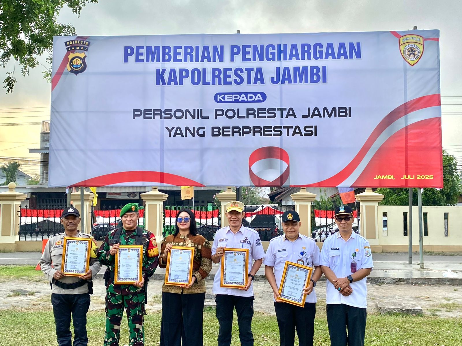 Penghargaan secara resmi diserahkan oleh Kapolresta Jambi, Kombes Pol Boy Sutan Binanga Siregar, S.I.K., M.H., saat memimpin Apel Pemberian Penghargaan kepada Satker/Polsek Polresta Jambi dan institusi di wilayah Kota Jambi yang telah menunjukkan pengabdian dan dedikasi luar biasa dalam mendukung tugas kepolisian. Kegiatan tersebut berlangsung di Lapangan Hijau Mapolresta Jambi, pada Selasa (30/07/2025).