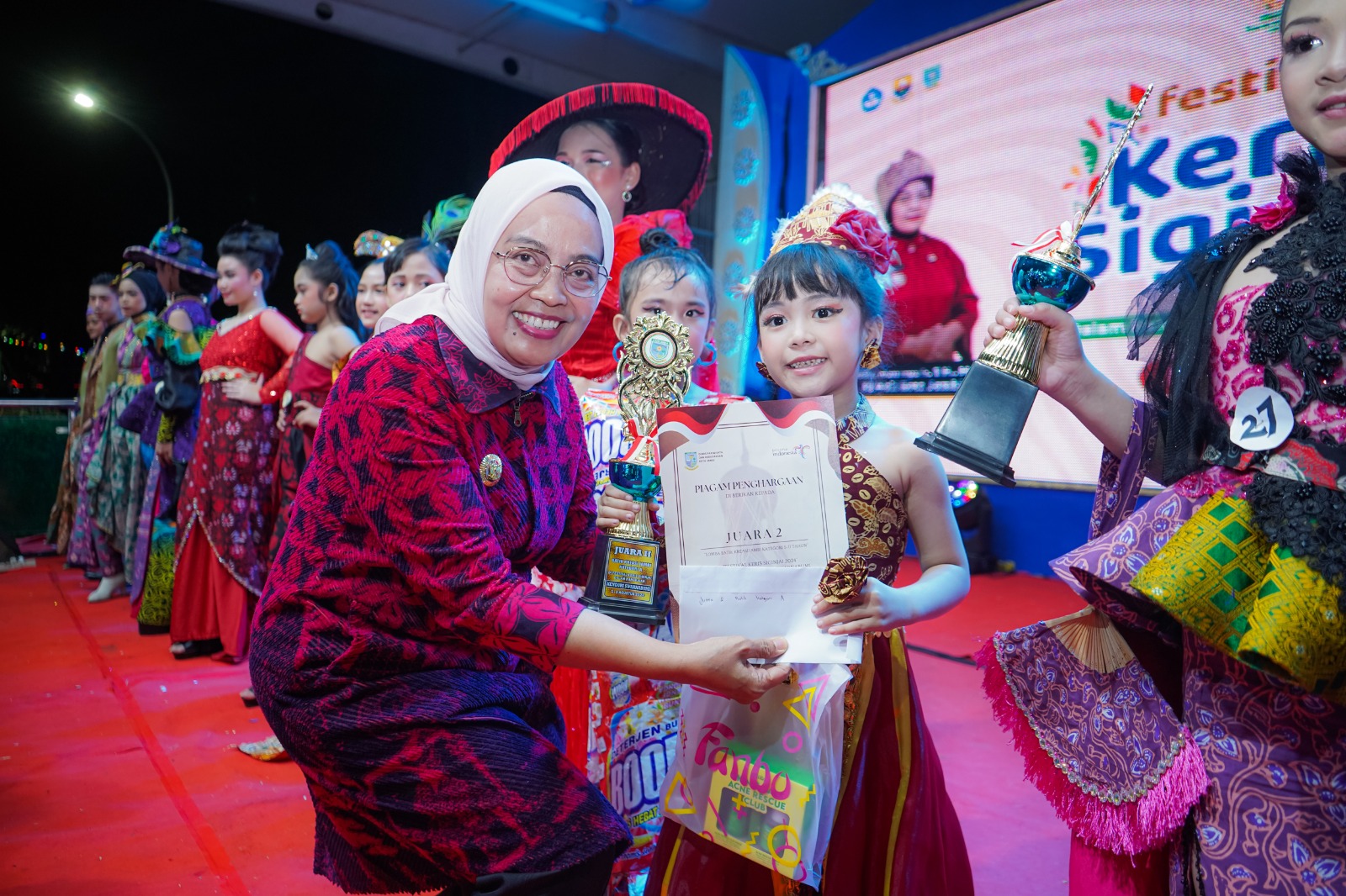 Dalam kesempatan itu, Ia juga menyampaikan apresiasi dan memberikan hadiah bagi pemenang lomba di partai final untuk kategori Fashion Show Batik Kreasi dan Fashion Show Bahan Daur Ulang yang diikuti para siswa/i tingkat SD, SMP dan SMA dalam Kota Jambi.