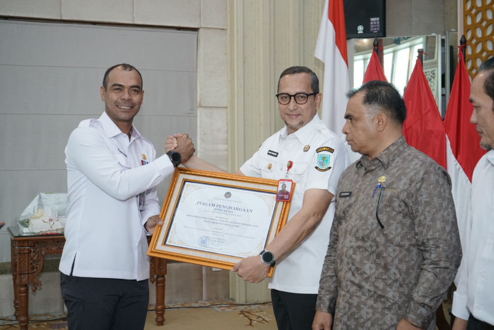 Jambinewsroom.com, Jambi - Dinas Penanaman Modal dan Pelayanan Terpadu Satu Pintu (DPMPTSP) Kota Jambi kembali menorehkan prestasi membanggakan. DPMPTSP Kota Jambi diganjar Penghargaan dari Direktorat Jenderal Imigrasi, Kementerian Imigrasi dan Pemasyarakatan Republik Indonesia sebagai Mitra Berkontribusi dalam Penyelenggaraan Layanan Keimigrasian pada Mal Pelayanan Publik (MPP) Kota Jambi. Penghargaan itu diserahkan oleh Kepala Kantor Wilayah Direktorat Jenderal Imigrasi Jambi, Petrus Teguh Arianto, dalam sebuah acara selebrasi di Aula Griya Mayang, Rumah Dinas Wali Kota Jambi, Rabu (19/11/2025).