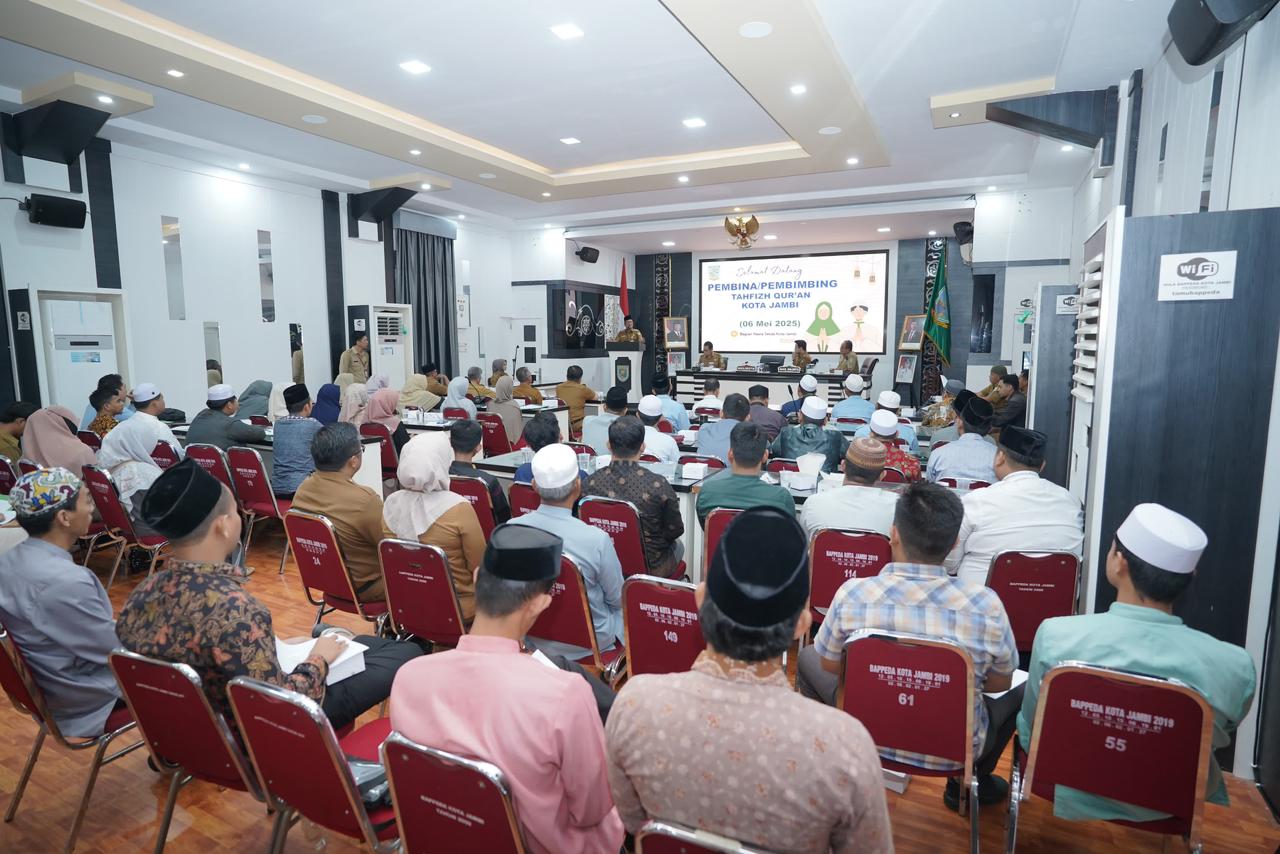 Penegasan itu disampaikan langsung oleh Wali Kota Maulana saat memimpin pertemuan bersama 73 guru tahfiz se-Kota Jambi di Aula Bappeda Kota Jambi, Selasa pagi (6/5/2025). Hadir dalam kesempatan itu Wakil Wali Kota Diza Hazra Aljosha, Asisten Pemerintahan dan Kesra Fahmi, Kepala Dinas Pendidikan Mulyadi, Kabag Kesra Kamal Firdaus, serta jajaran terkait lainnya.