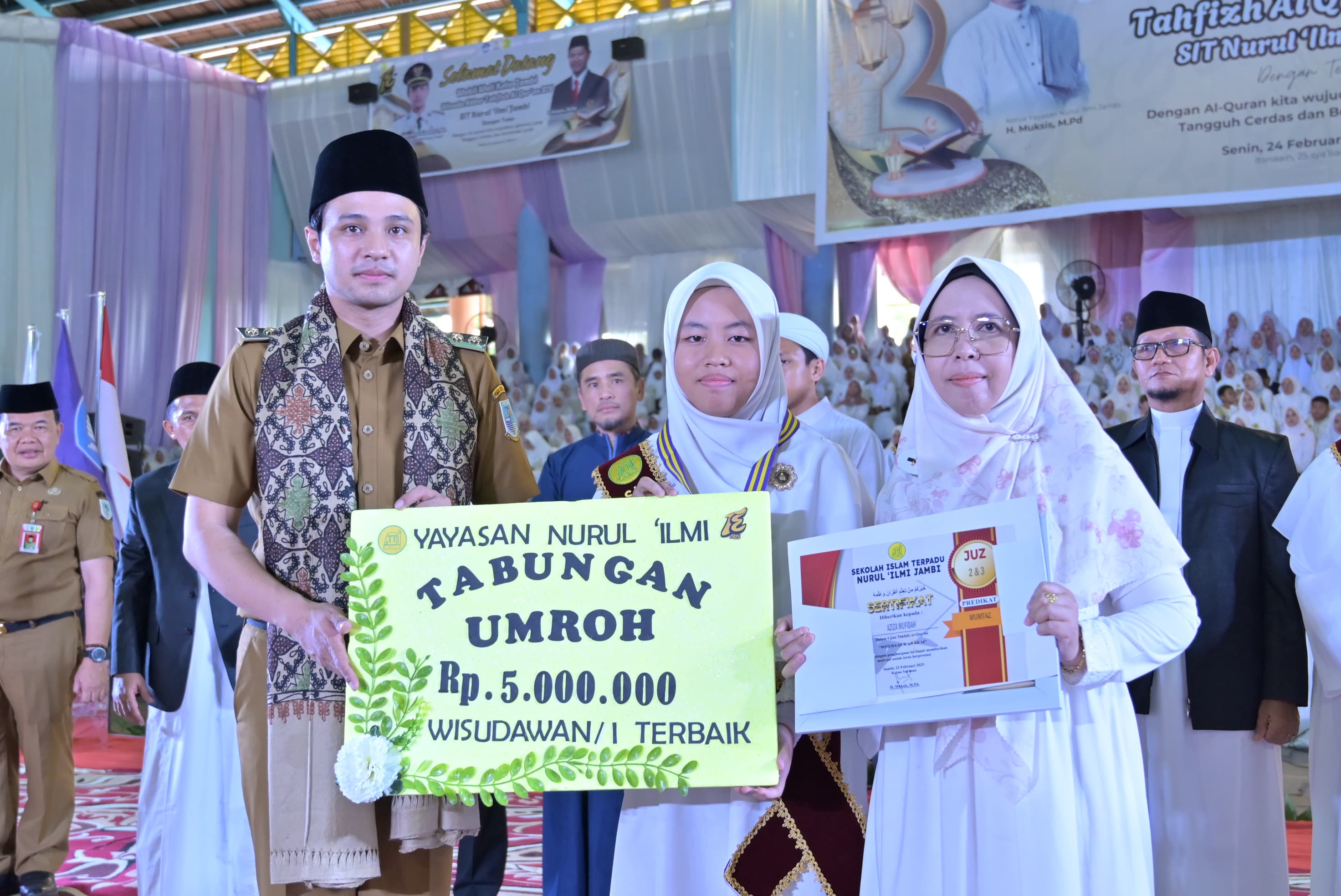 Jambinewsroom.com Jambi - Wakil Wali Kota Jambi, Diza Hazra Aljosha membuka Wisuda Akbar Tahfizh Al-Qur’an ke-14 Sekolah Islam Terpadu (SIT) Nurul Ilmi Jambi sesi 2 yang dilangsungkan di Gelanggang Olahraga (GOR) Kota Baru Jambi, Senin (24/2/2025).