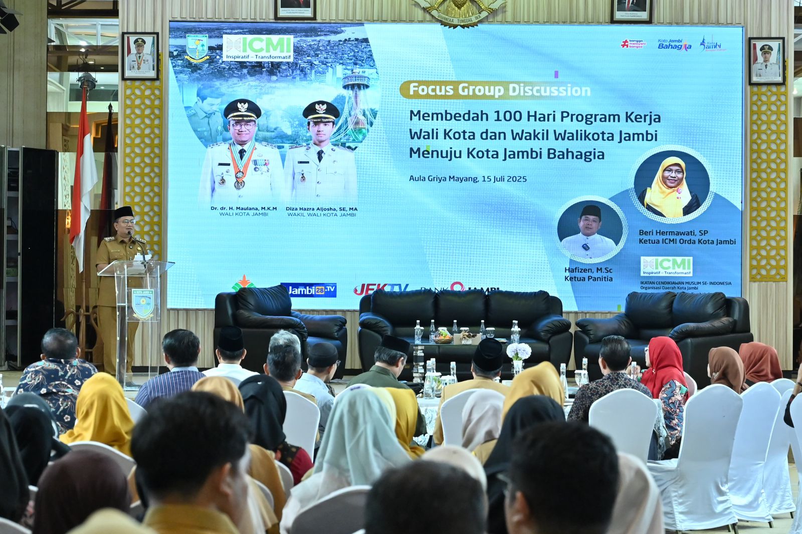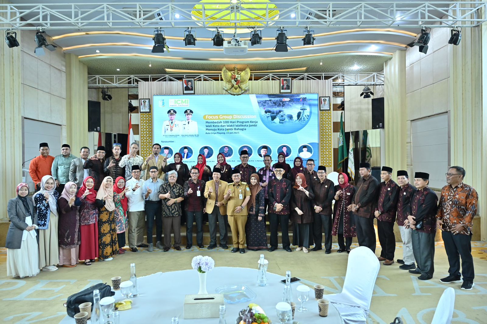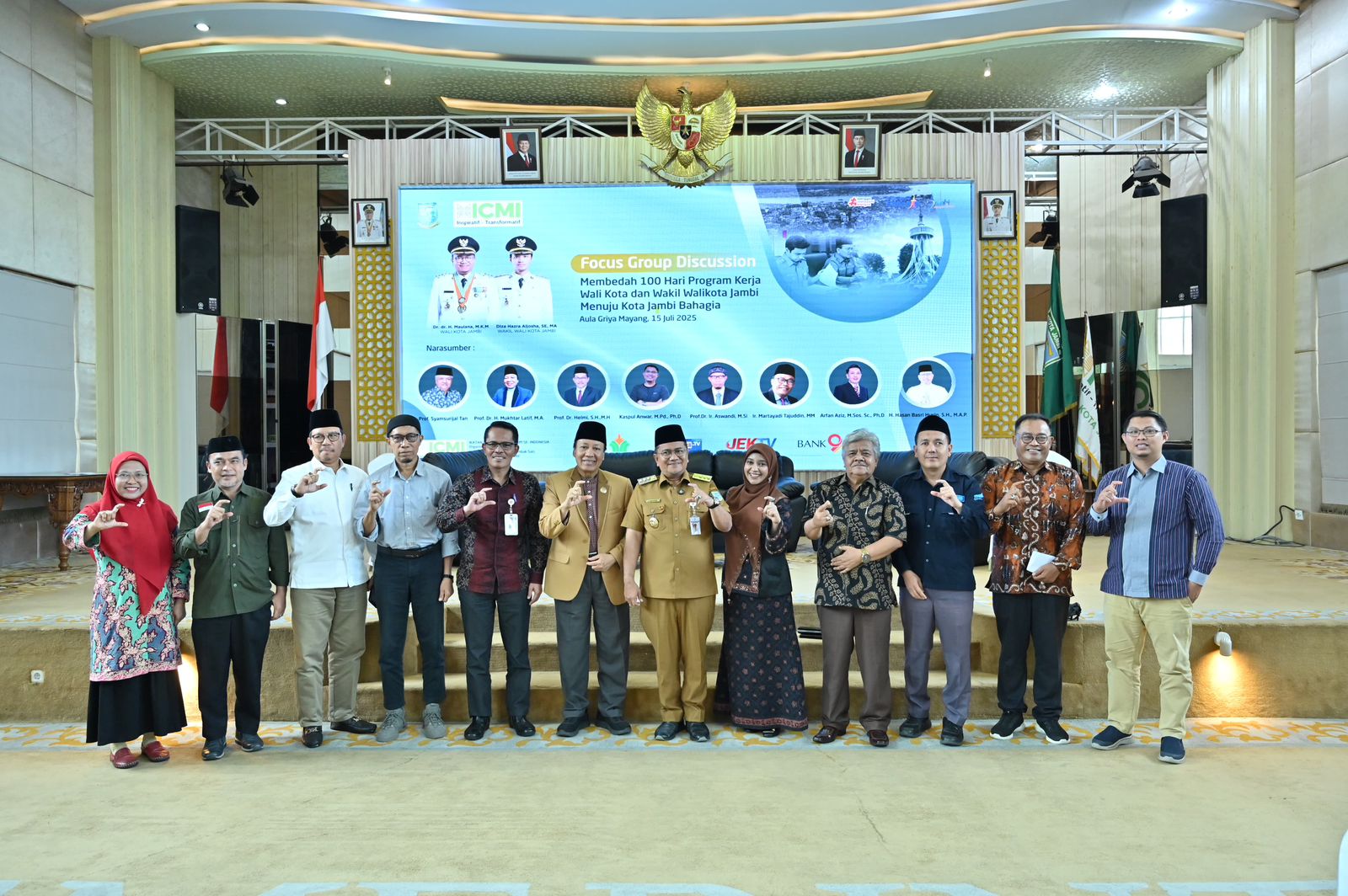 Acara yang berlangsung di Aula Griya Mayang, Rumah Dinas Wali Kota Jambi, pada Selasa (15/7/2025), turut menghadirkan langsung Wali Kota Jambi Dr. dr. H. Maulana, M.K.M., serta para pakar lintas bidang yang menjadi narasumber, antara lain: