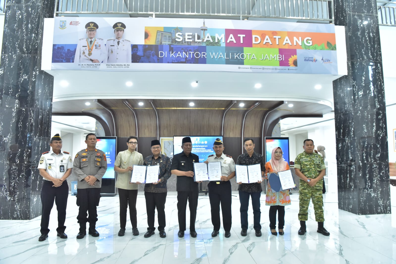 Penandatanganan dilakukan langsung oleh Wali Kota Maulana didampingi Wakil Wali Kota Diza Hazra Aljosha, serta diikuti secara serentak oleh aparat penegak hukum, yakni Pengadilan Negeri Jambi, Kejaksaan Negeri Jambi, Kepolisian Resor Kota Jambi, dan Komando Distrik Militer 0415 Jambi.