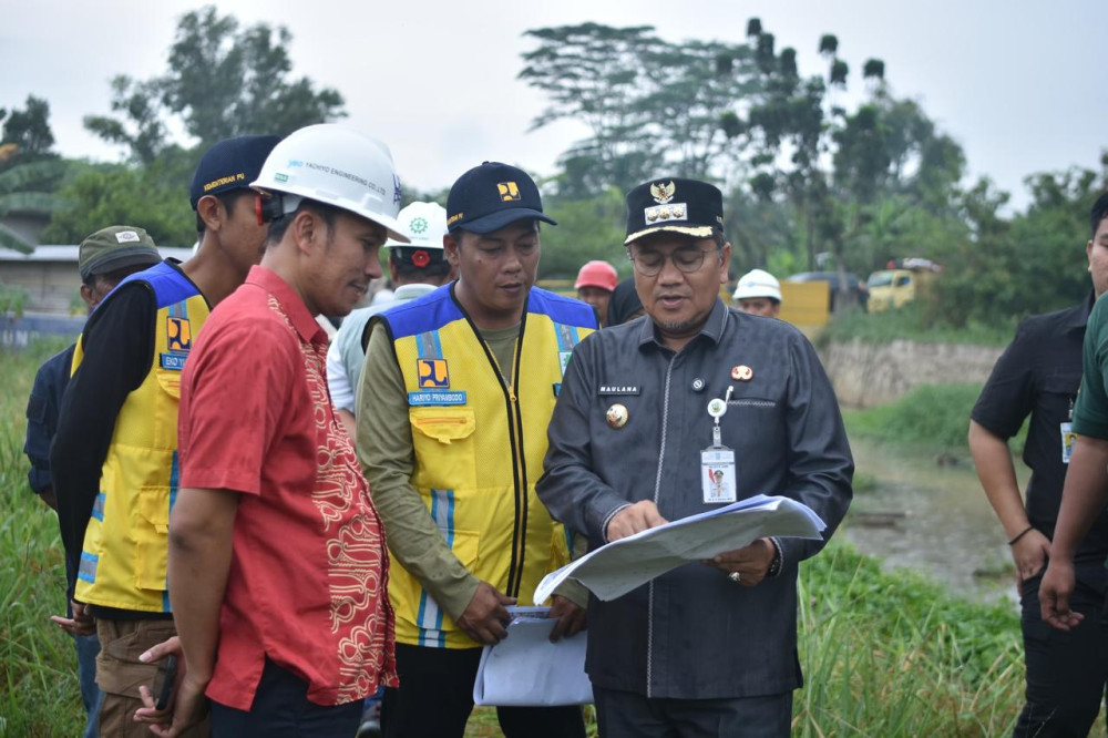 Ia menambahkan, kunjungan lapangan kali ini dilakukan untuk meninjau langsung progres pembangunan salah satu kolam retensi yang menjadi bagian dari sistem pengendalian banjir di Kota Jambi.