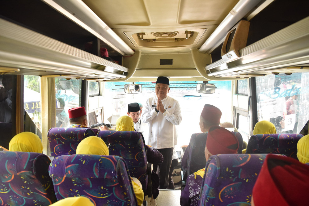 Usai prosesi pelepasan, Sekda A Ridwan menyempatkan diri menaiki salah satu bus yang mengangkut para jamaah menuju Asrama Haji, untuk memastikan kesiapan perjalanan serta memberikan semangat secara langsung. Dari dalam bus, Ridwan kembali memotivasi jamaah dan menitipkan pesan-pesan penting.