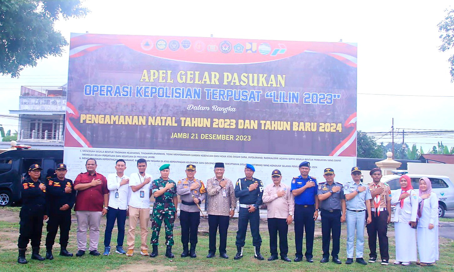Gelar Pasukan yang berlangsung di lapangan utama Polresta Jambi pada Kamis pagi (21/12/2023) itu diselenggarakan dalam rangka kesiapan petugas keamanan serta stakeholder terkait lainnya dalam Pengamanan Natal 2023 dan Tahun Baru 2024 di Kota Jambi.