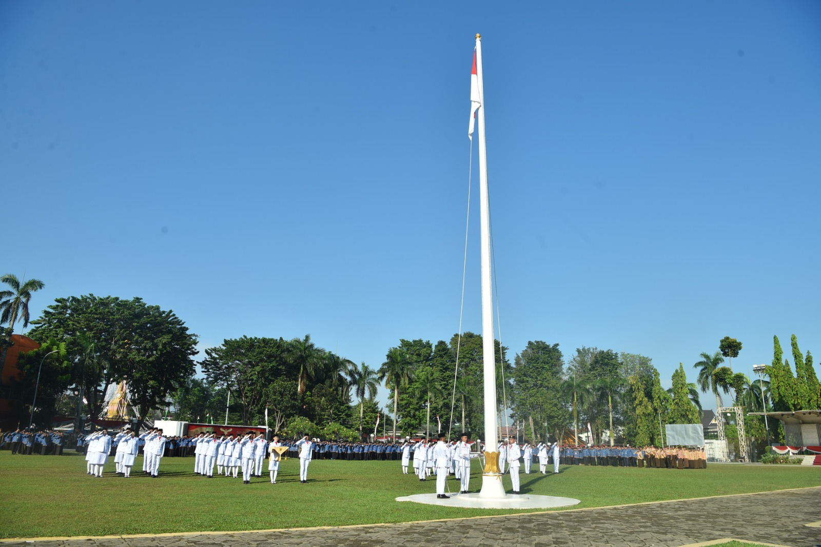 Jambinewsroom.com Jambi - Pemerintah Kota (Pemkot) Jambi menggelar upacara peringatan Hari Lahir Pancasila tahun 2025 di lapangan kantor utama Wali Kota Jambi, Senin (2/6/2025).