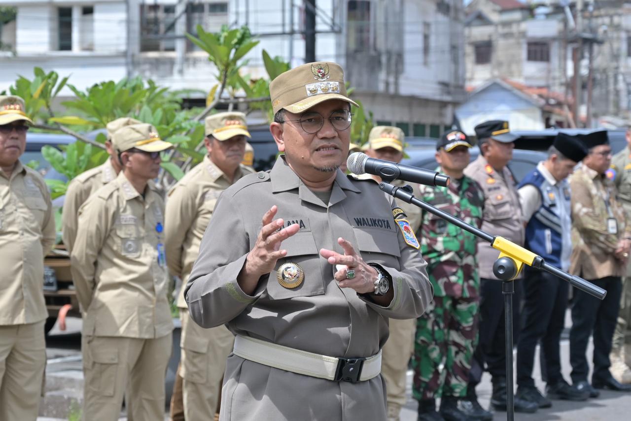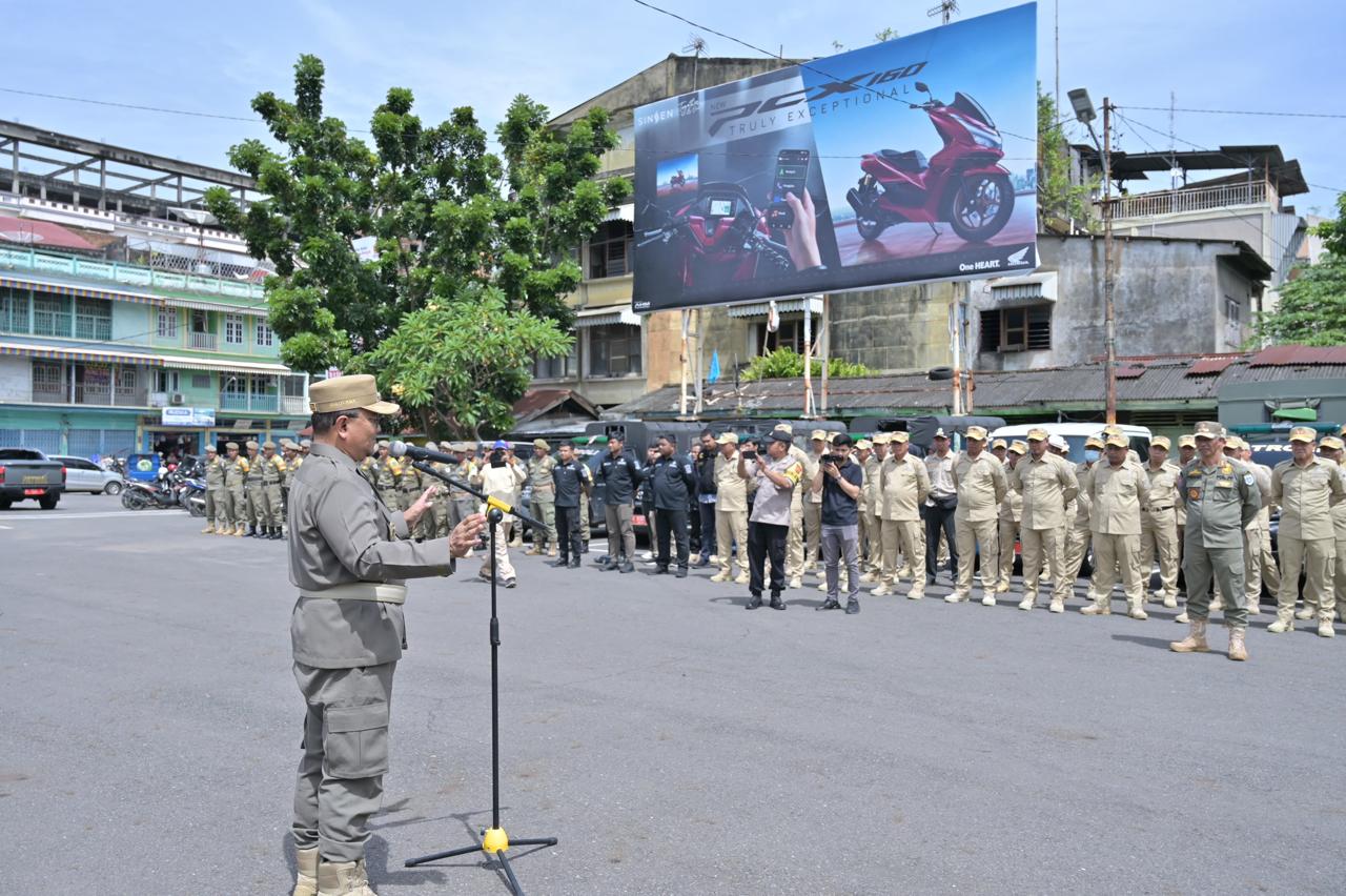 Jambinewsroom.com Jambi - Wali Kota Jambi dokter Maulana memimpin Apel Tim Terpadu Penanganan Gelandangan dan Pengemis (Gepeng) dan Anak Jalanan (Anjal), Jumat (7/3/2025).