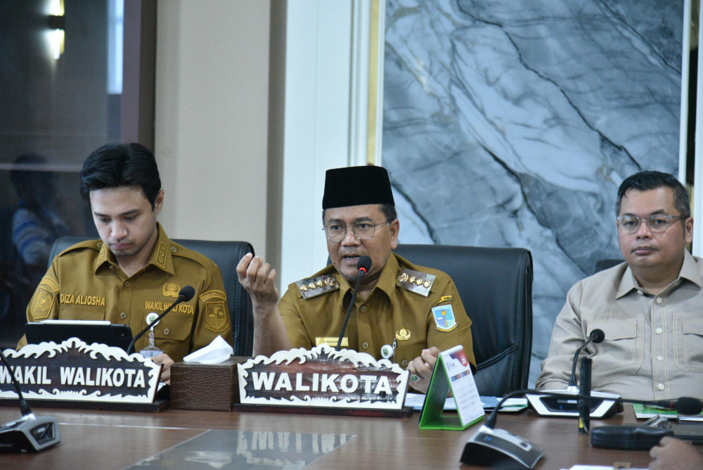 Jambinewsroom.com Jambi - Wali Kota Jambi dokter Maulana didampingi Wakil Wali Kota Diza Hazra Aljosha memimpin Rapat Koordinasi (Rakor) Percepatan Penanganan dan Penanggulangan Banjir di Kota Jambi, Selasa (4/3/2025).