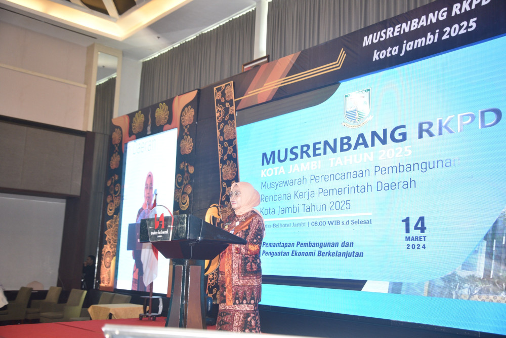 Jambinewsroom.com Jambi - Pj Wali Kota Jambi Sri Purwaningsih buka Musyawarah Rencana Pembangunan Daerah (MUSRENBANG) RKPD Kota Jambi Tahun 2025, yang mengangkat tema "Pemantapan Pembangunan dan Penguatan Ekonomi Berkelanjutan", bertempat di Swiss Belhotel Kota Jambi. Kamis (14/03).