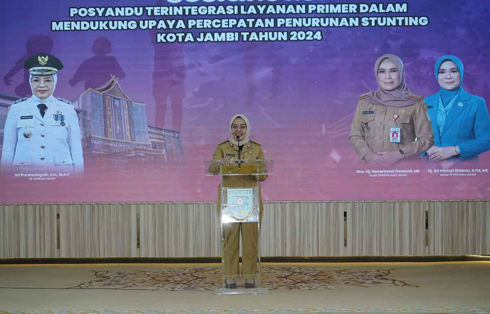 Jnr.com Jambi - Pemerintah Kota (Pemkot) Jambi terus berupaya mengurangi angka stunting. Upaya itu salah satunya dengan menggelar sosialisasi posyandu terintegrasi yang dilaksanakan oleh DPMPPA kota Jambi. Sosialisasi dibuka Penjabat (Pj) Wali Kota Jambi Sri Purwaningsih di ruang Griya Mayang rumah dinas Wali Kota Jambi, Senin (15/1/2024) siang.