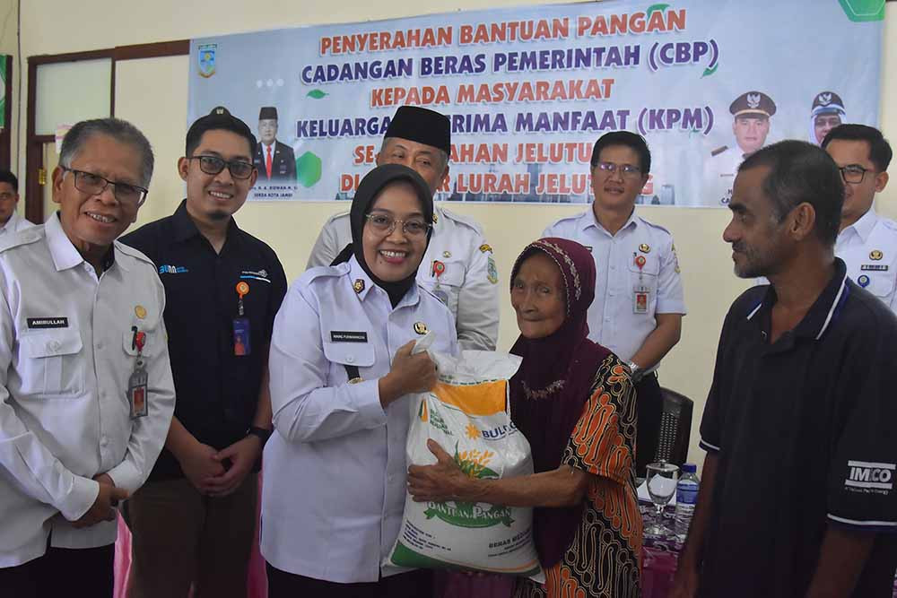 "Hari ini kami Pemerintah Kota Jambi meneruskan amanat dari pemerintah pusat, untuk menyerahkan bantuan cadangan beras pemerintah kepada masyarakat keluarga penerima manfaat yang sesuai dengan kriteria penerima cadangan beras pemerintah ini," ujar Sri, dalam sambutannya.