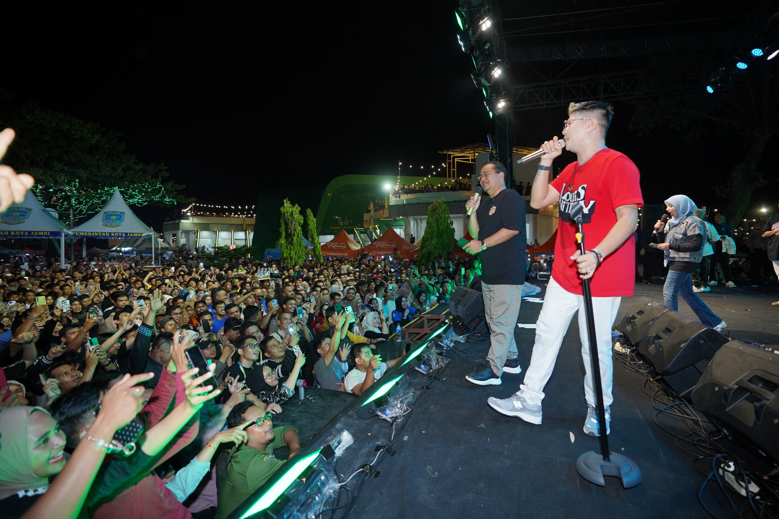 Jambinewsroom.com Jambi - Puluhan ribu pasang mata tumpah ruah memadati kawasan Terminal Rawasari, Kecamatan Pasar Jambi, pada Minggu malam (1/6/2025), untuk menyaksikan kemeriahan Malam Hiburan Rakyat yang menjadi puncak perayaan Hari Ulang Tahun ke-79 Pemerintah Kota Jambi dan Hari Jadi ke-624 Tanah Pilih Pusako Batuah.
