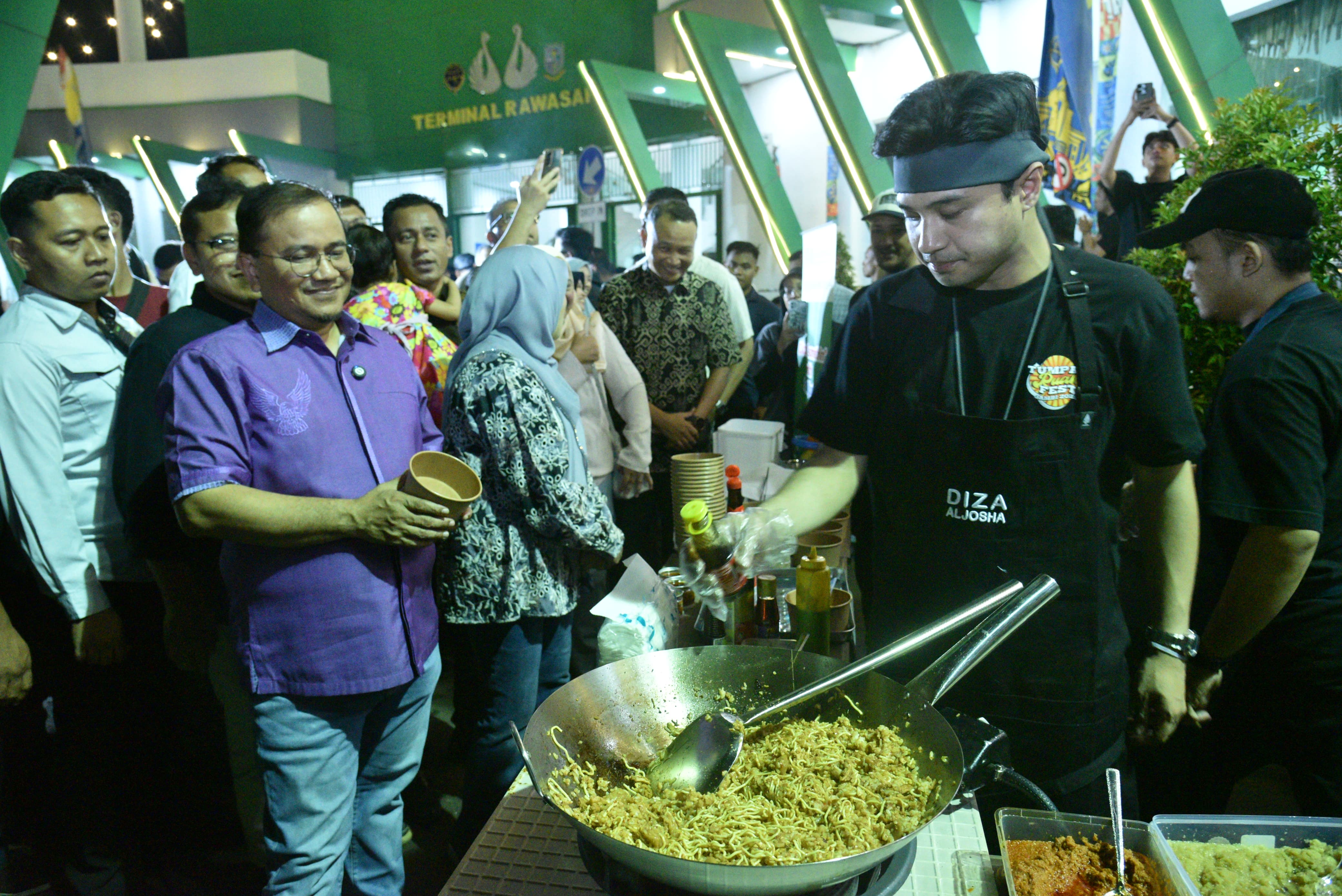 Menariknya, semangat kebersamaan benar-benar terasa dalam pembukaan acara itu. Wakil Wali Kota Jambi, Diza Hazra Aljosha, yang juga menjadi Ketua Penyelenggara, turun langsung menyajikan makanan kepada para pengunjung.