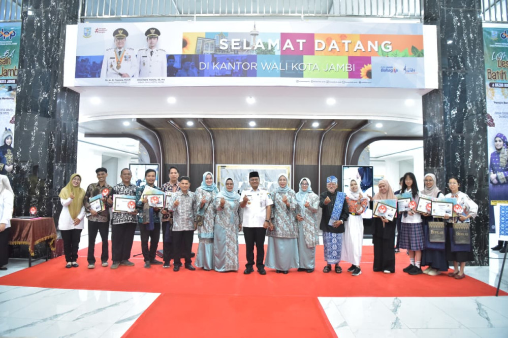 Jambinewsroom.com, Jambi - Sebagai bentuk apresiasi terhadap perajin seni, khususnya Seni Batik di Kota Jambi, Wali Kota Jambi, Dr. dr. H. Maulana, M.K.M, menyerahkan secara langsung piagam penghargaan dan hadiah kepada para pemenang lomba Desain Motif Batik yang telah diselenggarakan oleh Dekranasda Kota Jambi.