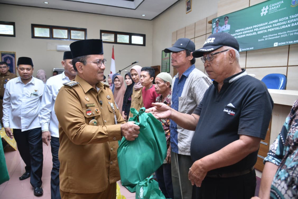Jambinewsroom.com, Jambi - Sebagai bentuk dukungan ekonomi kepada pejuang keagamaan yang merupakan garda terdepan dalam mendidik akhlak ditengah masyarakat, Wali Kota Jambi, Dr. dr. H. Maulana, M.K.M, serahkan bantuan kepada pelaksana fardhu kifayah, terdiri dari guru ngaji non PAMI dan Mahasiswa S1 Mudim Masjid, bertempat di Aula Dharma Wanita Provinsi Jambi, Senin (22/12/2025).