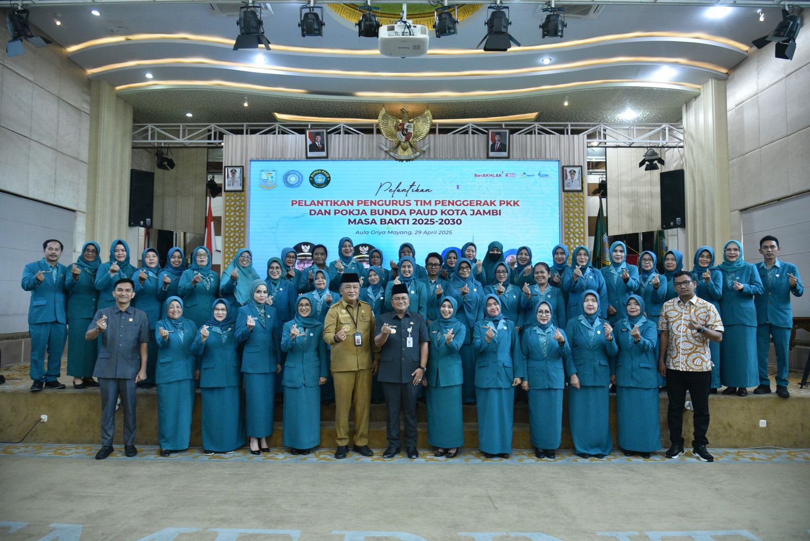 Jambinewsroom.com Jambi - Wali Kota Jambi dokter Maulana, resmi melantik Pengurus Tim Penggerak (TP) PKK dan Kelompok Kerja (Pokja) Bunda PAUD Kota Jambi masa bakti 2025–2030, dalam sebuah seremoni yang berlangsung di Aula Griya Mayang, Rumah Dinas Wali Kota Jambi, Selasa (29/4/2025).