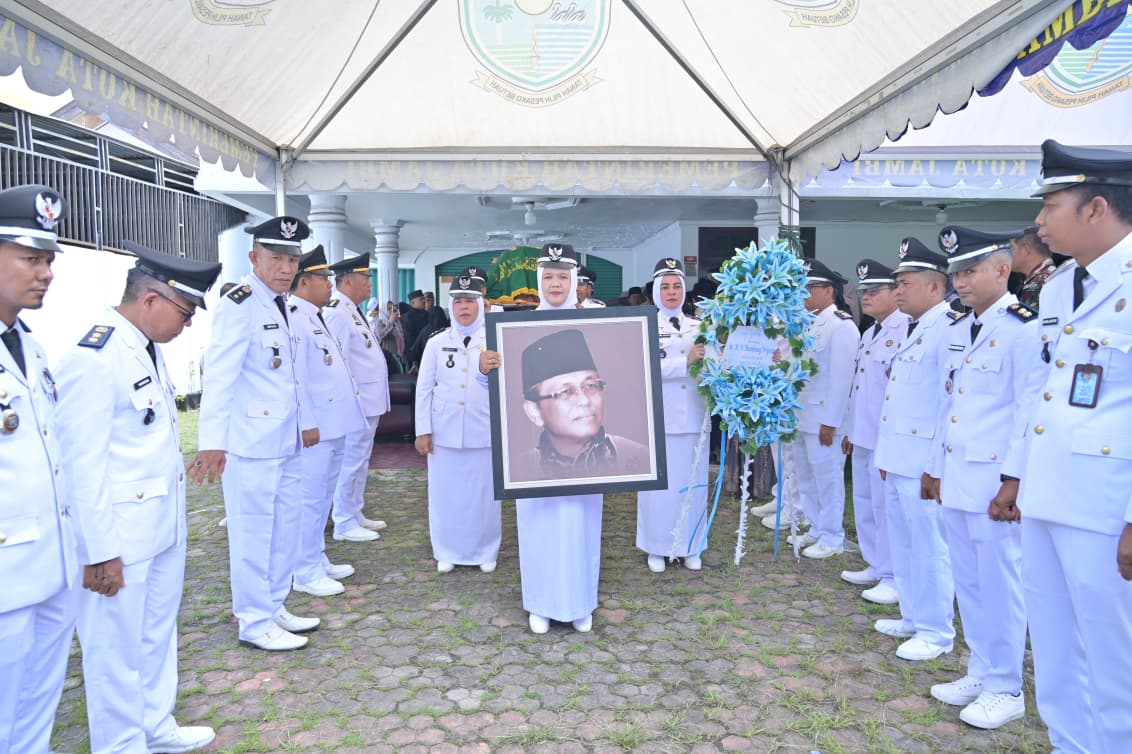 Jambinewsroom.com, Jambi – Sebagai bentuk penghormatan terakhir terhadap Wali Kota Jambi periode 2008-2013, dr. H. Raden Bambang Priyanto yang menniggal dunia pada Selasa sore (25/11/2025) kemarin. Wali Kota Jambi, Dr. dr. H. Maulana, M.K.M, memimpin langsung prosesi upacara pemakaman jenazah yang disemayamkan di Taman Makam Pahlawan Satria Bakti, Rabu (26/11/2025).