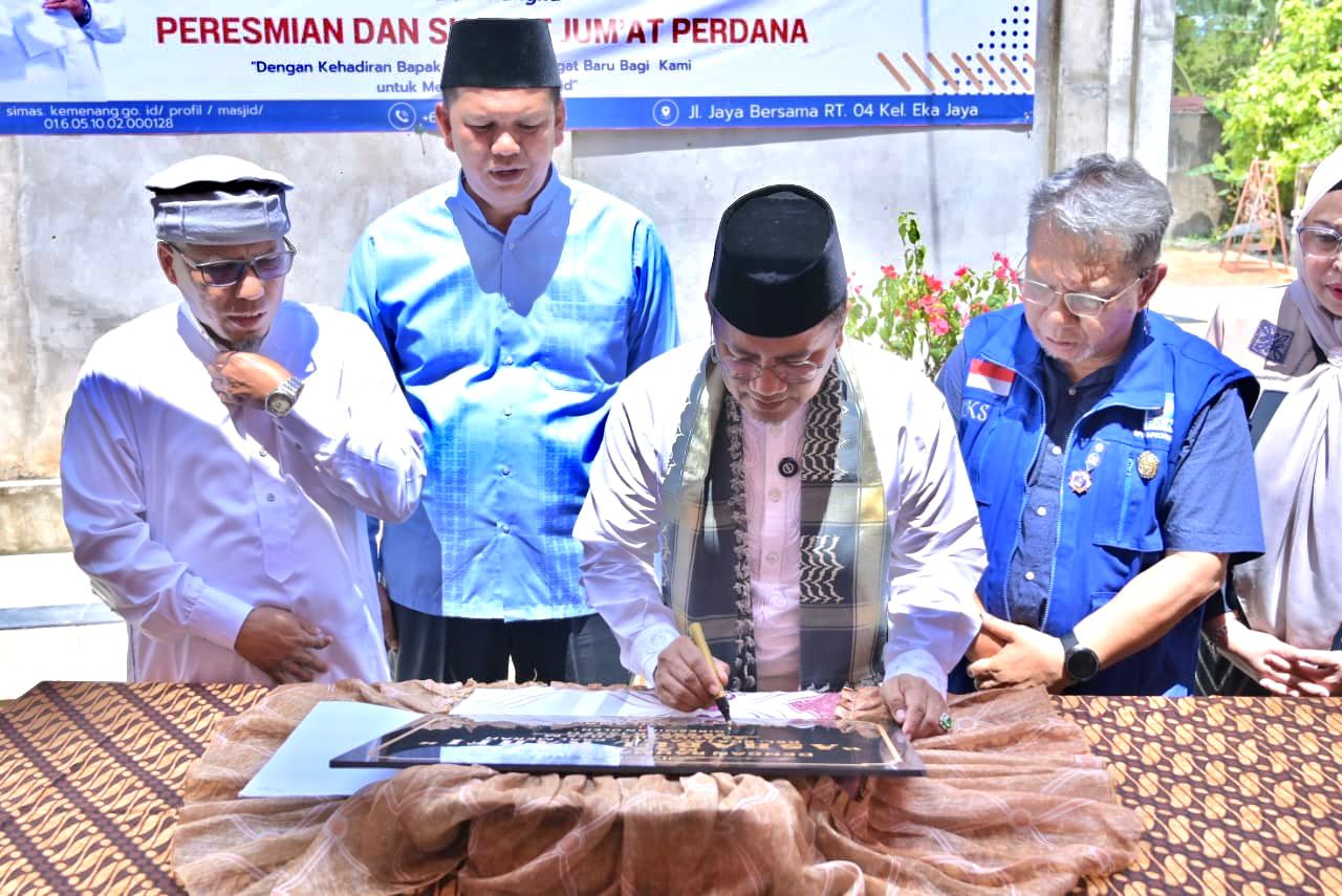 Jambinewsroom.com, Jambi - Wali Kota Jambi, Dr. dr. H. Maulana, M.K.M., meresmikan Masjid Ashabul Kahfi yang berlokasi di Jalan Jaya Bersama I, RT 04, Kelurahan Eka Jaya, Kecamatan Paal Merah, pada Jumat siang (22/8/2025). Peresmian ditandai dengan penandatanganan prasasti oleh Wali Kota usai dirinya memimpin shalat Jumat perdana sebagai imam sekaligus khatib di masjid tersebut.
