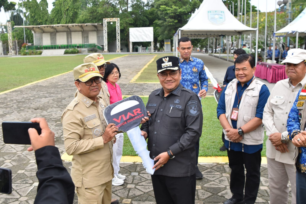 Penyerahan bantuan tersebut dilakukan dilapangan utama Kantor Wali Kota Jambi, dalam bentuk Gerobak Motor (Germo) atau Becak Motor (Bentor) kendaraan roda tiga yang diserahkan secara langsung oleh Wali Kota Dr.dr. H. Maulana, M.K.M, didampingi Wakil Wali Kota Diza Hazra Aljosha, S.E., M.A, dan diterima langsung oleh para Lurah se-Kota Jambi.