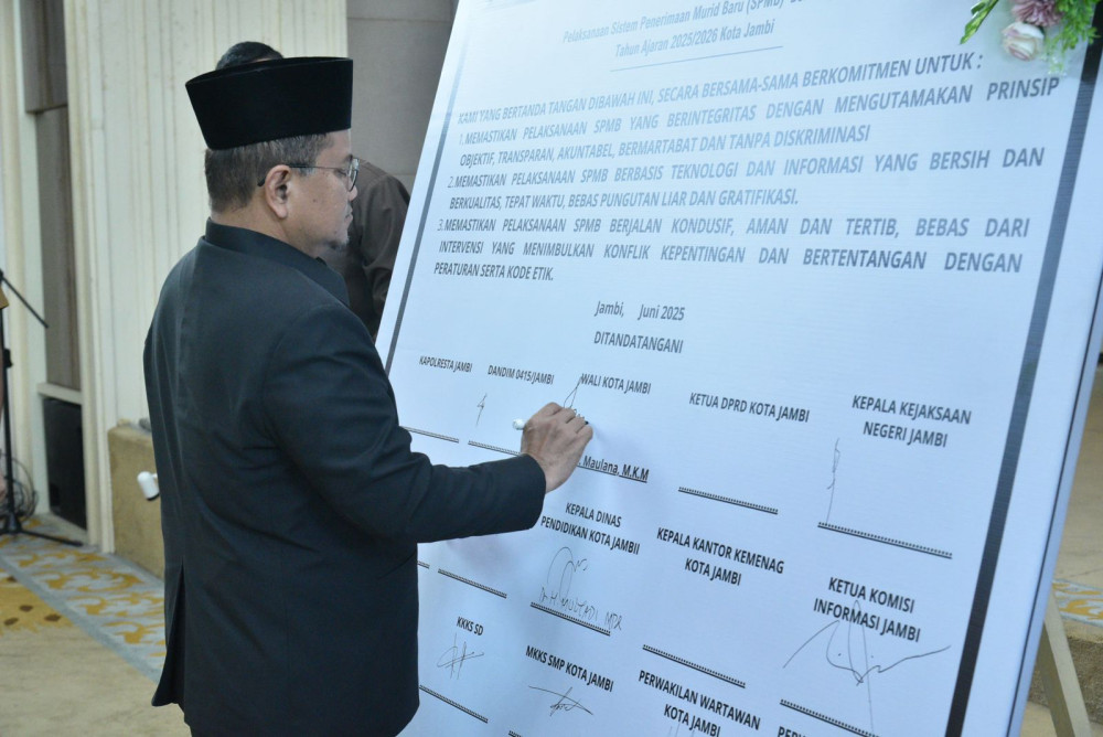 Sebelumnya, Kepala Dinas Pendidikan Kota Jambi, Mulyadi, dalam laporannya menyampaikan bahwa pelaksanaan SPMB tahun 2025 mengacu pada dua regulasi utama: SK Wali Kota Jambi Nomor 247 Tahun 2025 tentang panitia penerimaan murid baru, dan SK Nomor 357 Tahun 2025 tentang petunjuk teknis penerimaan murid baru jenjang TK, SD, dan SMP.