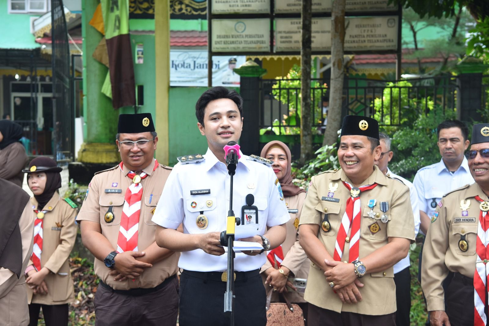 Jambinewsroo.com Jambi - Wakil Wali Kota Jambi, Diza Hazra Aljosha, S.E., M.A., menghadiri kegiatan Pesta Siaga Kwartir Ranting (Kwaran) Gerakan Pramuka Telanaipura yang digelar di halaman Kantor Camat Telanaipura, Kota Jambi, Rabu pagi (18/6/2025).