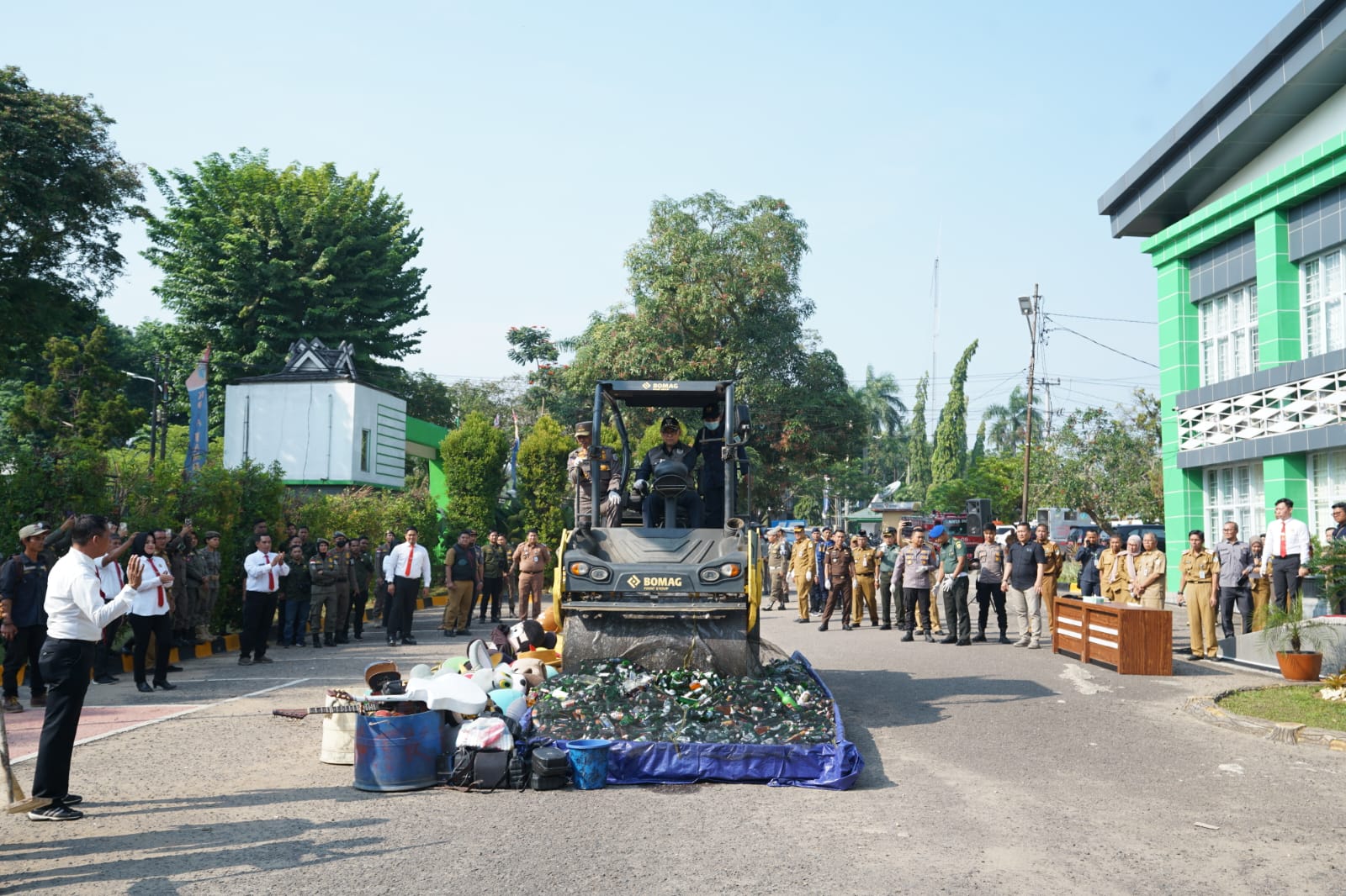 Operasikan Sendiri Tandem Roller, Fasha Ratakan Ribuan Botol Miras