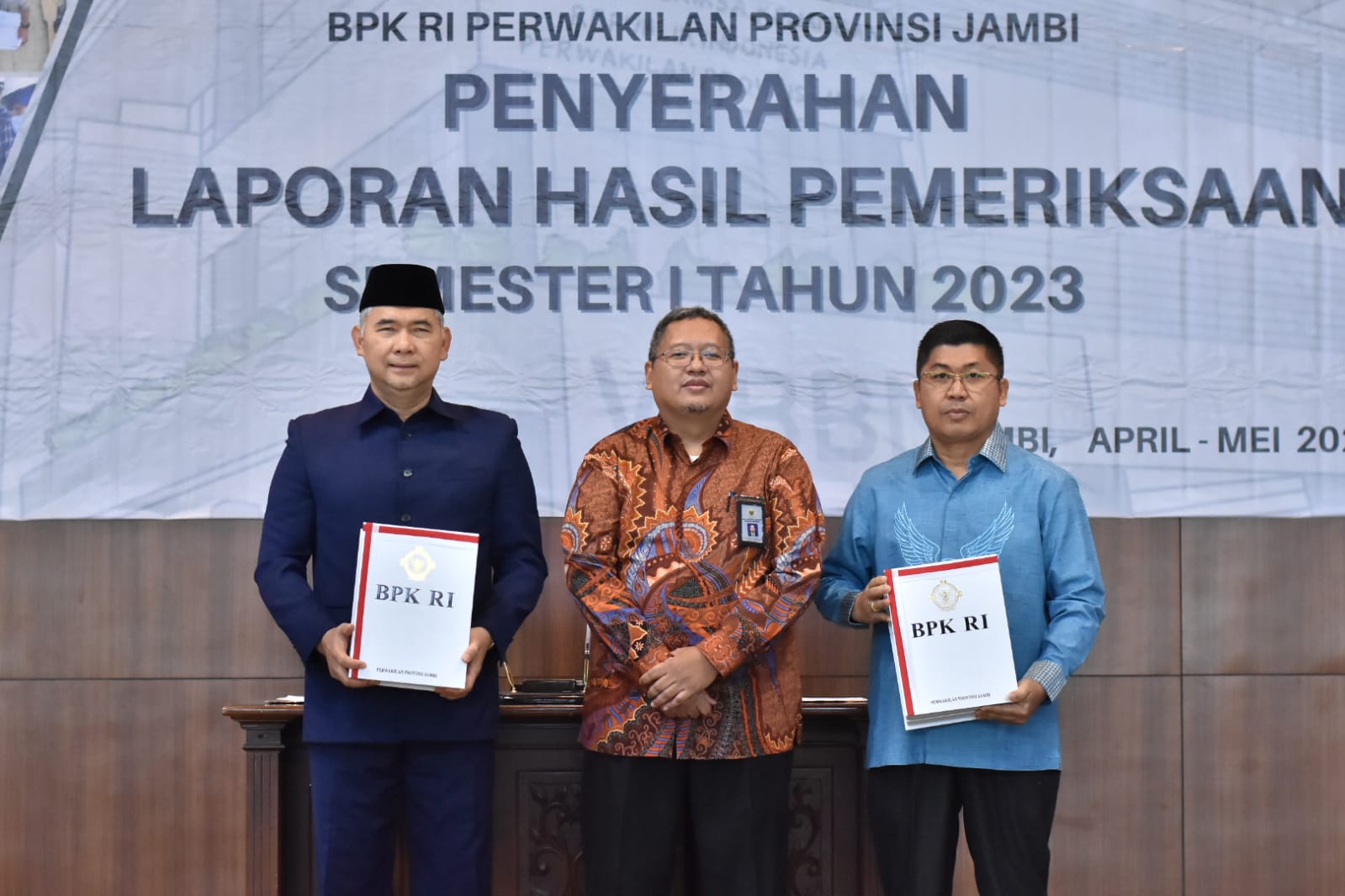 JAMBI - Penghujung Ramadan 1444 H membawa keberkahan tersendiri bagi Tanah Pilih Pusako Batuah Kota Jambi. Kota Jambi kembali sukses meraih opini Wajar Tanpa Pengecualian (WTP) atas Laporan Keuangan Pemerintah Daerah (LKPD) Kota Jambi tahun 2022 dari Badan Pemeriksa Keuangan (BPK) Re1 Indonesia. Kota Jambi sukses mempertahankan opini WTP untuk ketujuh kalinya secara berturut-turut sejak tahun 2017 lalu. Opini tersebut diterima secara langsung oleh Wali Kota Jambi Syarif Fasha dari Kepala BPK RI Perwakilan Jambi, Rio Tirta, S.E., M.Acc., CSFA., bertempat di Kantor BPK RI Perwakilan Jambi, Selasa pagi (18/4).