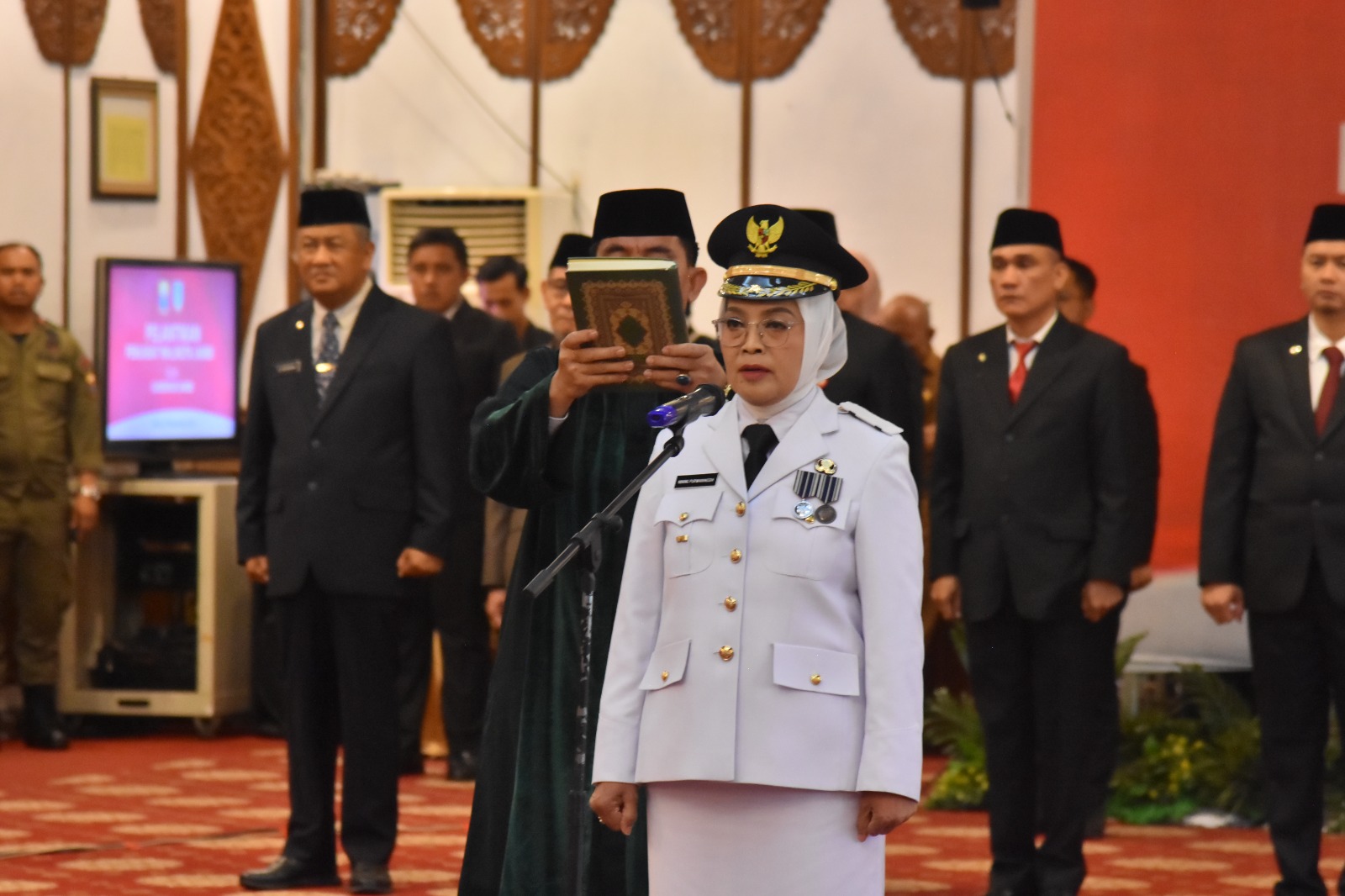 ambi - Selepas berakhirnya kepemimpinan Wali Kota Jambi Periode 2013-2023, Syarif Fasha, estafet kepemimpinan pemerintahan Kota Jambi kini beralih ke Sri Purwaningsih. Sosok birokrat Kementerian Dalam Negeri Re1 Indonesia tersebut, kini resmi menahkodai kapal besar pemerintah Kota Jambi. Bertempat di Auditorium Rumah Dinas Gubernur Jambi, Selasa sore (7/11/2023), Penjabat Wali Kota Jambi, Sri Purwaningsih, S.H., M.A.P. resmi dilantik oleh Gubernur Jambi Al Haris.