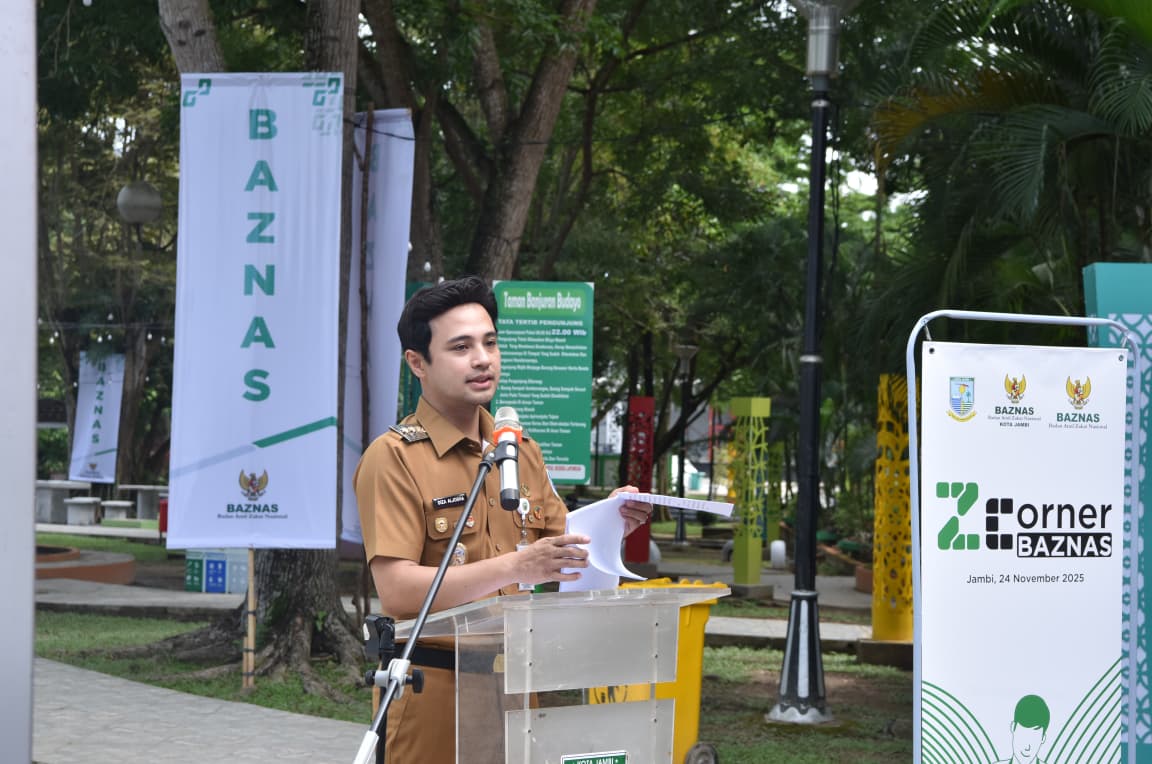 Jambinewsroom.com, Jambi – Sentra kuliner Zakat Corner (ZCorner) Badan Amil Zakat Nasional (Baznas) Kota Jambi resmi dilaunching Wakil Wali Kota Diza Hazra Aljosha, S.E., M.A, bersama Pimpinan Baznas RI Bidang Pendistribusian dan Pendayagunaan, Hj. Saidah Sakwan, MA, pada Senin pagi (24/11/2025), bertempat di Taman Banjuran Budayo atau yang dikenal saat ini dengan Taman Remaja.