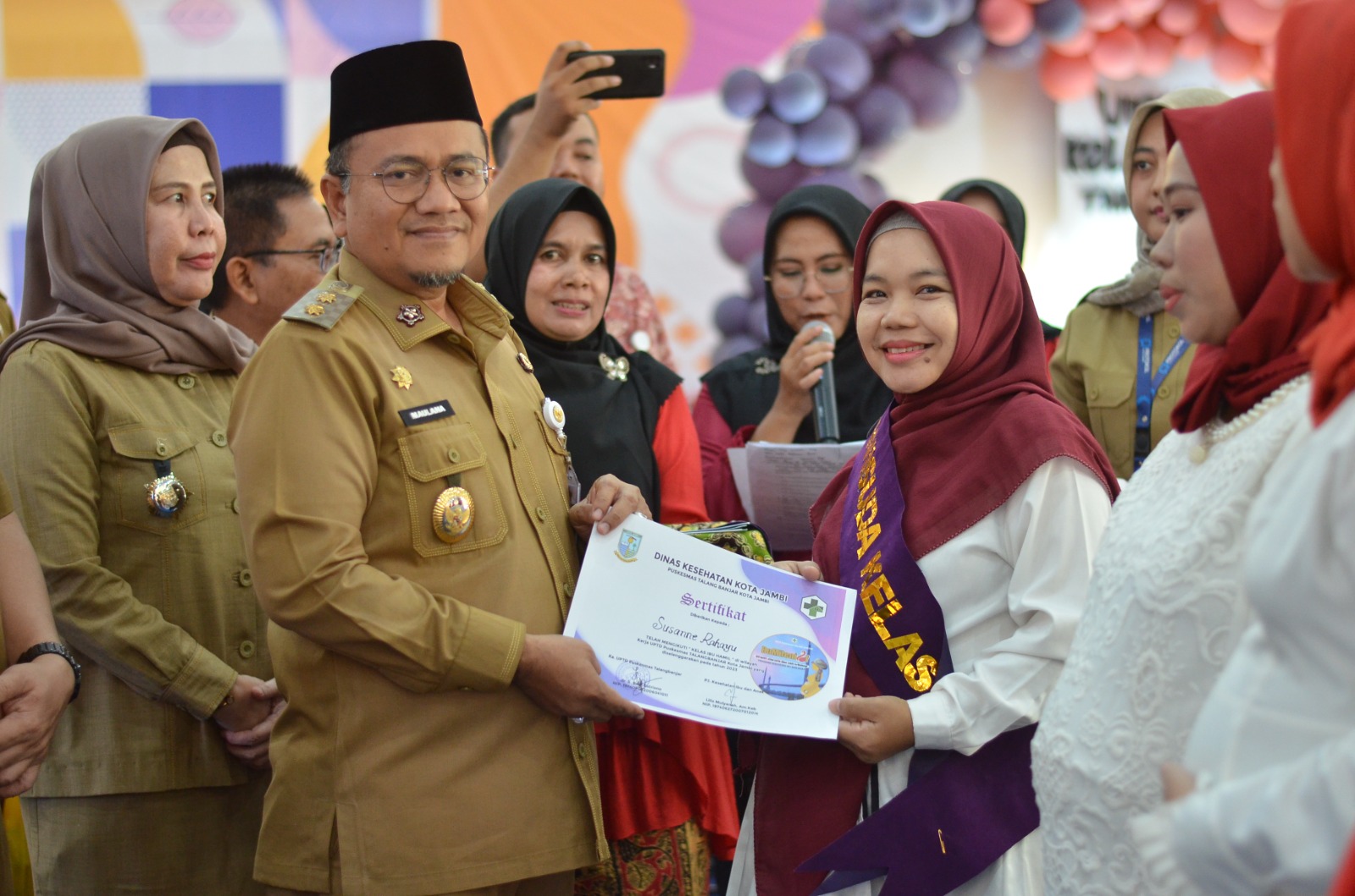 Jambi - Tidak hanya pelajar mahasiswa, di Kota Jambi, ibu hamil pun kini turut diwisuda kelulusan. Bertempat di Lippo Mal Jambi Timur, Selasa pagi (15/8/2023), Wakil Wali Kota Jambi Dr. dr. H. Maulana, MKM., mewisuda 40 ibu-ibu hamil yang berada di wilayah kerja Puskesmas Talang Banjar Jambi Timur. Kompak mengenakan baju warna putih, ibu-ibu mengandung tersebut tampak sumringah dan bersemangat mengikuti acara tersebut.